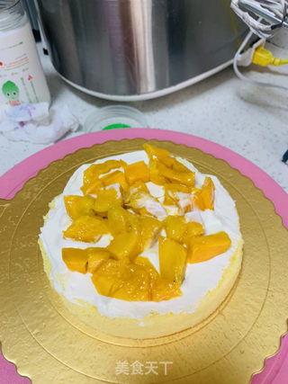 12. 装饰:待蛋糕完全冷却后,用淡奶油装饰,再撒上一些芒果粒,美美的芒果蛋糕就完成了!